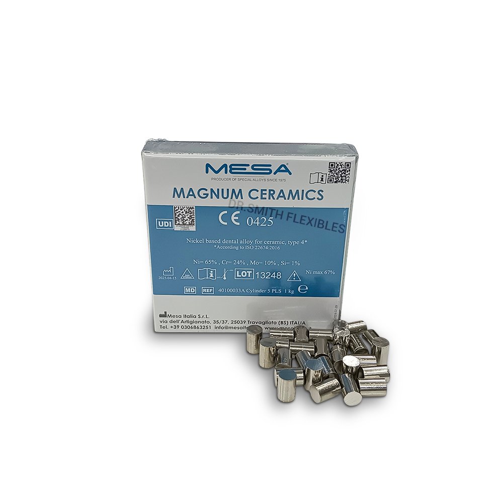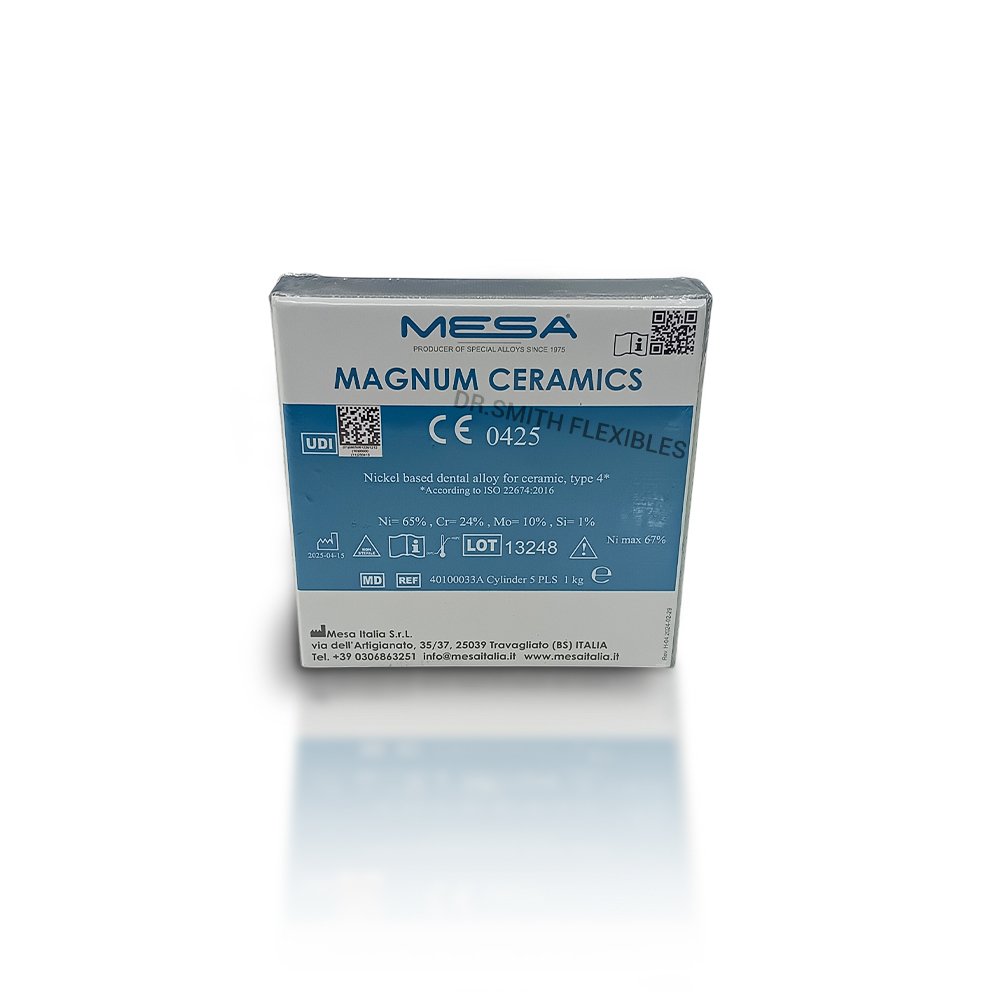 MESA Magnum Ceramics is a premium nickel-based dental alloy specially developed for ceramic restorations (PFM). It provides excellent bonding strength with ceramic, high corrosion resistance, and reliable casting performance, making it ideal for professional dental labs.