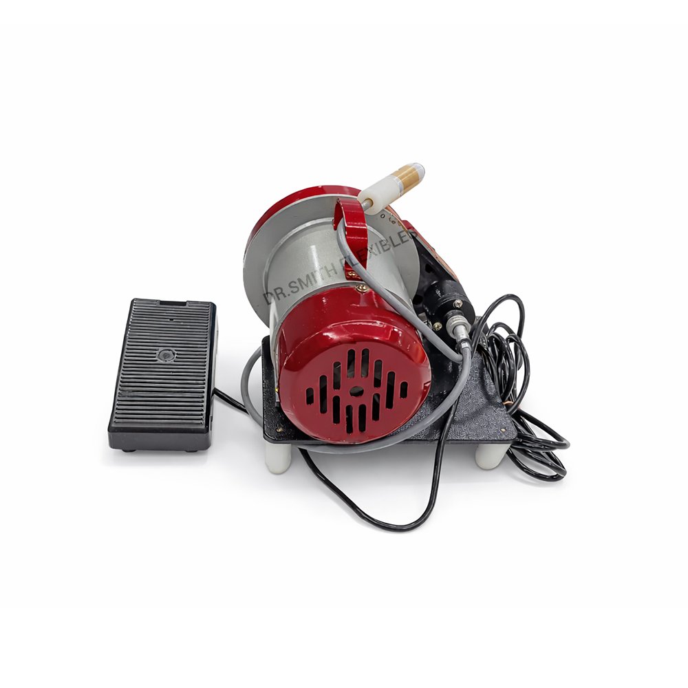 The Jaipuria Engine Motor is a dental laboratory motor designed for polishing, trimming, grinding, and finishing dental prosthetics. It comes with a flexible shaft handpiece, allowing technicians to perform precise work on dentures, acrylic appliances, flexible dentures, and orthodontic devices. The machine features a high-speed motor and durable metal construction, making it suitable for regular dental laboratory use.